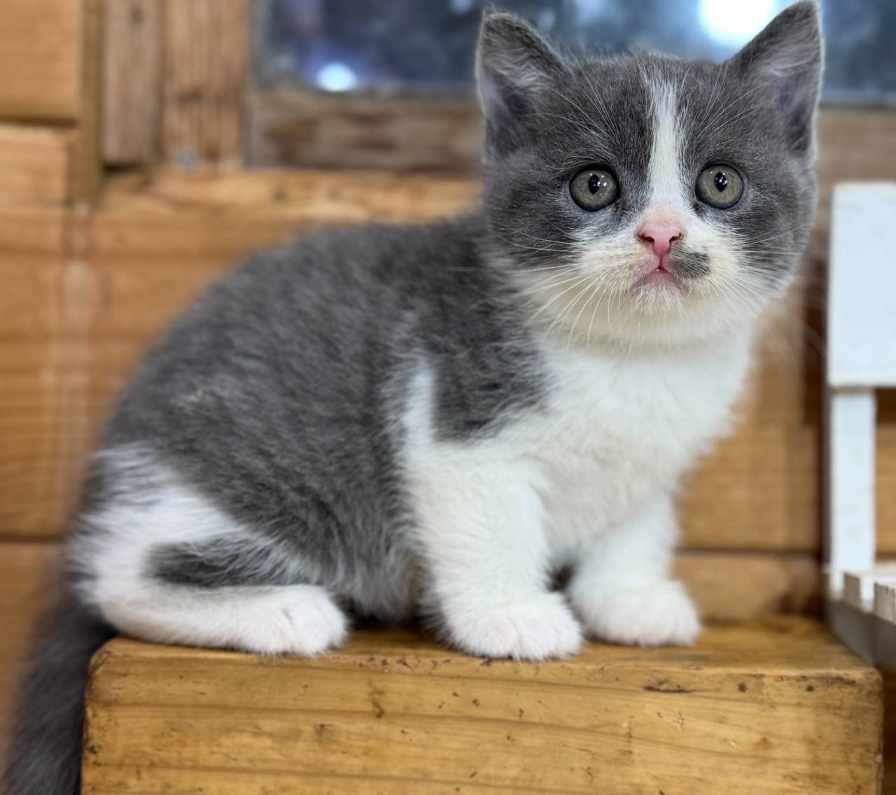 ブリティッシュ・ショートヘアの男の子「ブルー&ホワイト」(British Shorthair,elusa,M2) 2025/11/19 ブリティッシュショートヘア 2025年10月9日誕生 2025年11月19日撮影 ブリティッシュショートヘア ブルー&ホワイト/男の子 ハチワレの男の子で、けっこう活動的です。好奇心が強い子であちこち探検するのが好きです。口の傍にあるのはイタズラでついた汚れではなく紋様です。トイレの躾もオーケーで問題ありません。お渡し前には健康診断を受けます。 販売済み 両親 母親/エルサ ブルー&ホワイト/2021年3月生まれ 子育て熱心で、いつもお乳をあげている子煩悩なお母さん 父親/白くま ブルー/2015年1月生まれ ボス顔の大柄な体躯をした優しいお父さん